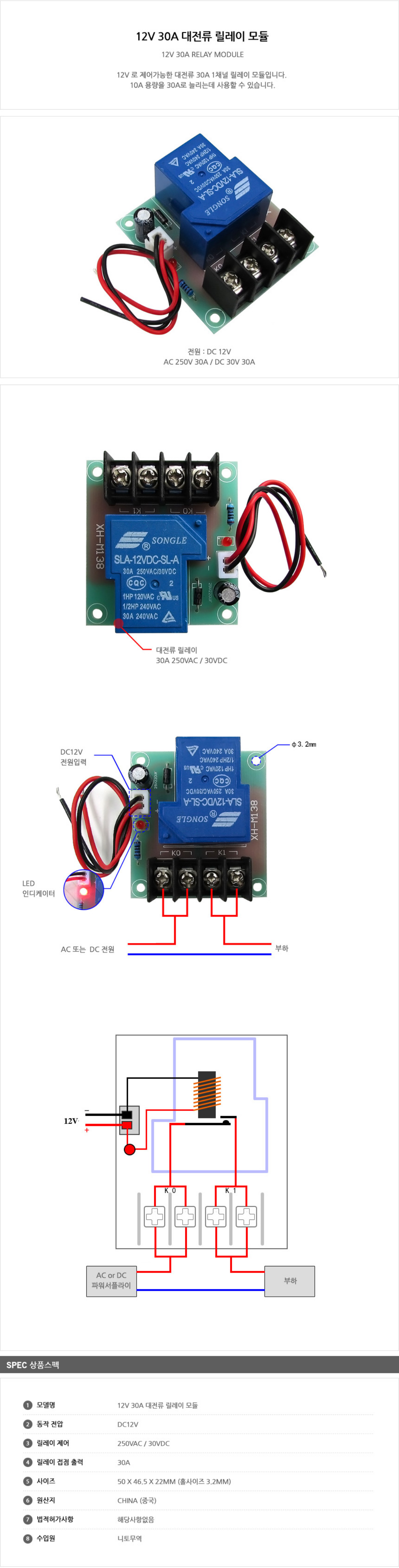 동작전압 DC 5V, 제어가능 최대전압 AC 240V, 제어가능 전류 2A