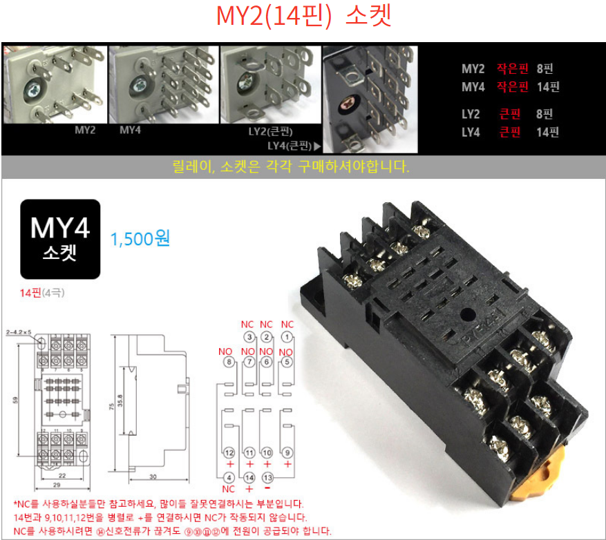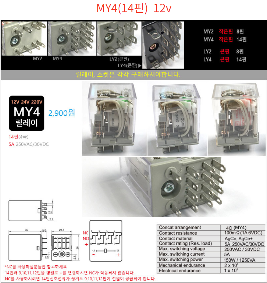 릴레이 12V 14핀 MY4