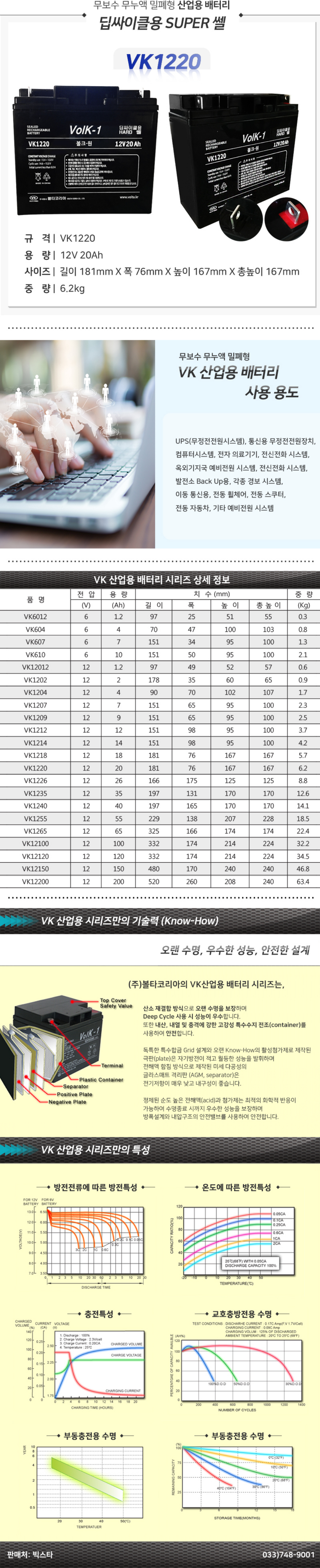 VK1220 볼크원 산업용 무보수 밀폐형 배터리