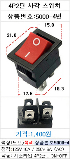 작동: 시소타입, 4P2단 ON-OFF, 노브색상: 빨강