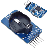 사용전압 3.3~5.5V, 시계 정확도 0~40° 2ppm, 메모리칩 AT24C32 (32kB), 인터페이스 I2C (기본주소 0x57), 배터리 CR2032