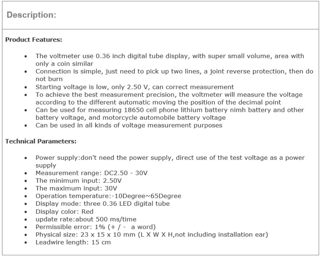 0.36" Red FND, Update rate 500㎳/time, Permissible error 1%