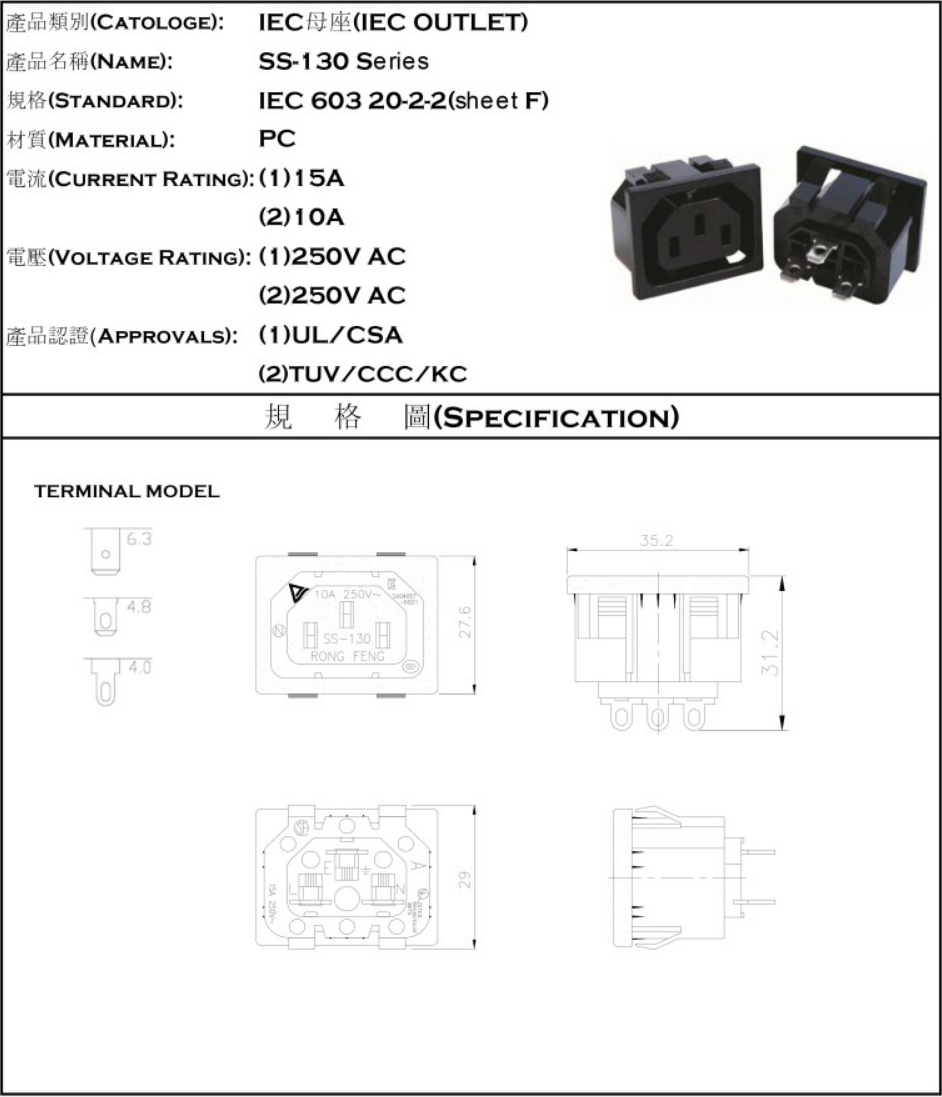 외형크기 30.8x24.0㎜ 단자폭 4.8㎜