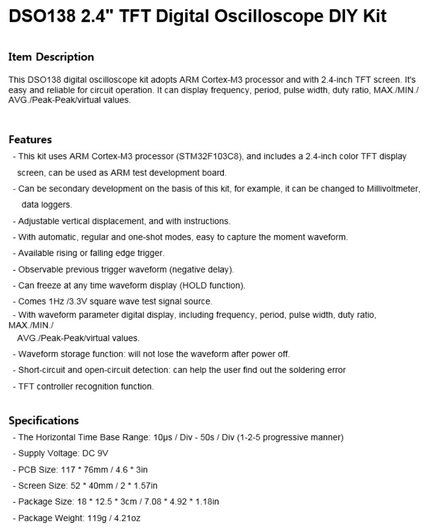 2.4inch(52x40㎜ / 2x1.57in) Color TFT Display, Supply Voltage DC 9V, PCB Size 117x76㎜ / 4.6x3in